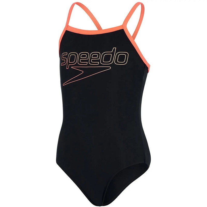 Speedo Swimsuit Boom Logo Thinstrap Muscleback Zwart/Rood 9-10